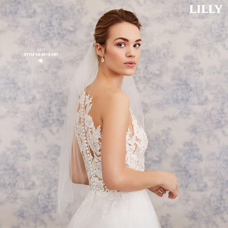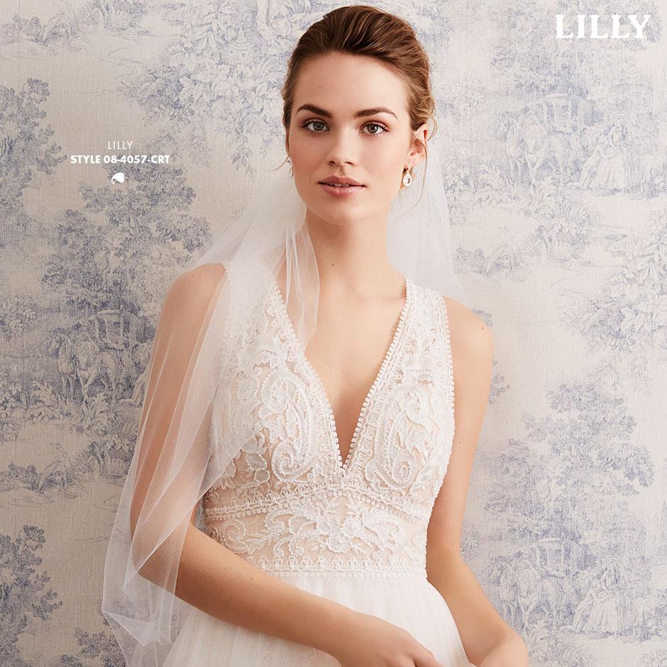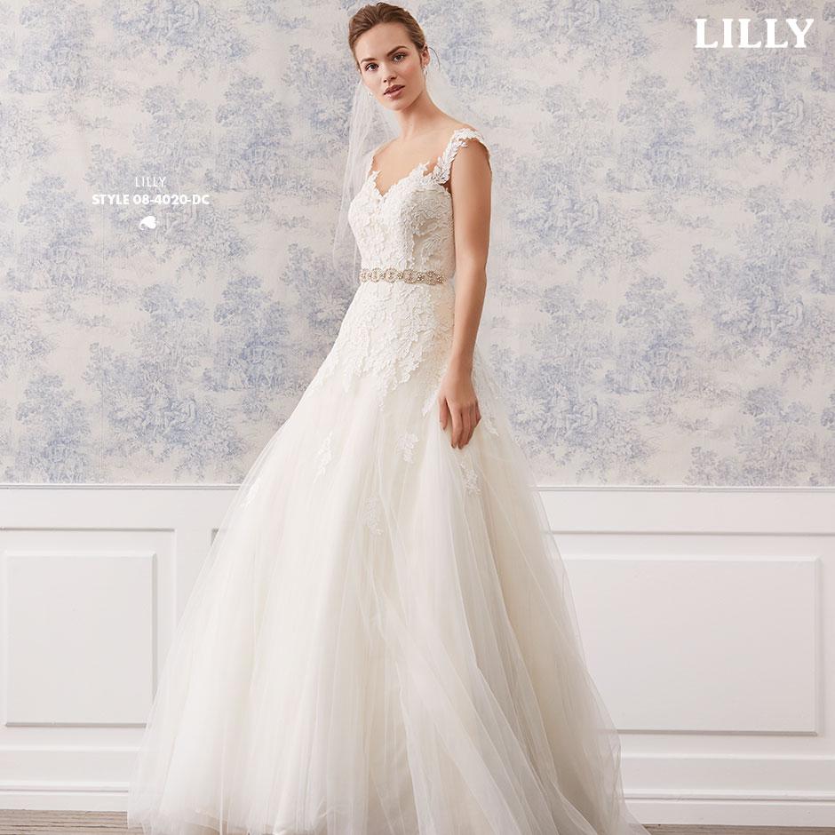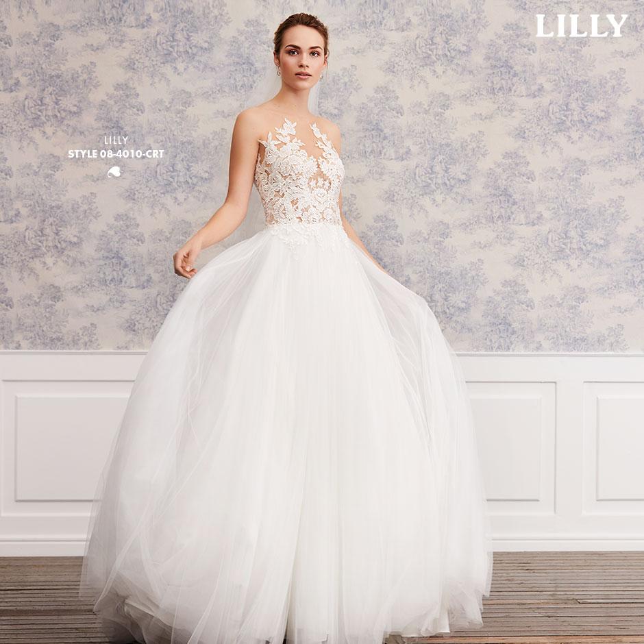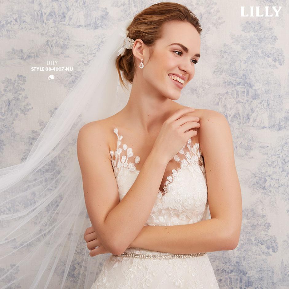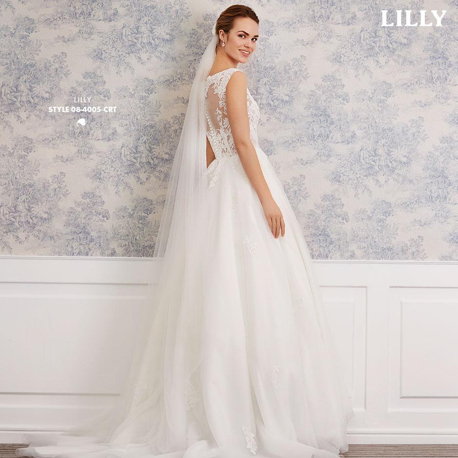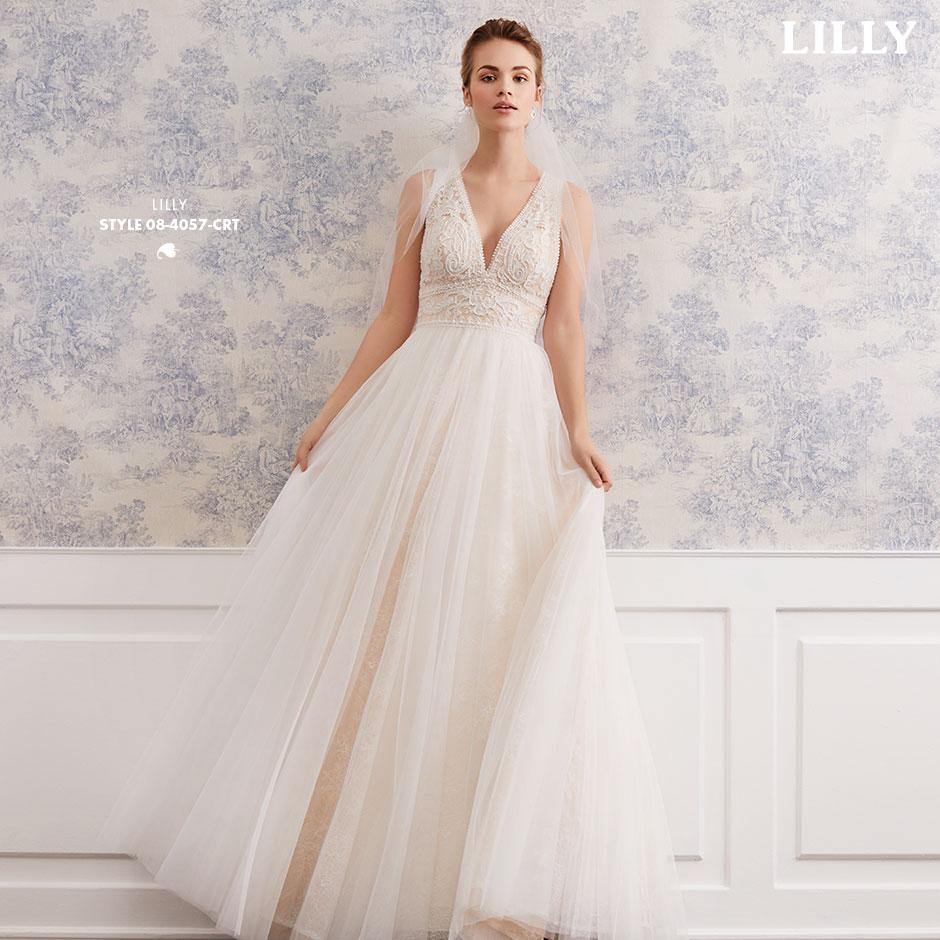 Lette brudekjoler i excellente pasformer, der smyger sig om den feminine silhuet, med vovede detaljer og fine gennemsigtige finésser. De lette materialer svæver blødt om kroppen og farverne er mikset i bløde cremede nuancer, der fremhæver de smukke blonder i moderne antik-look, understreget af glimmer i form af  diskrete perler og pailletter.