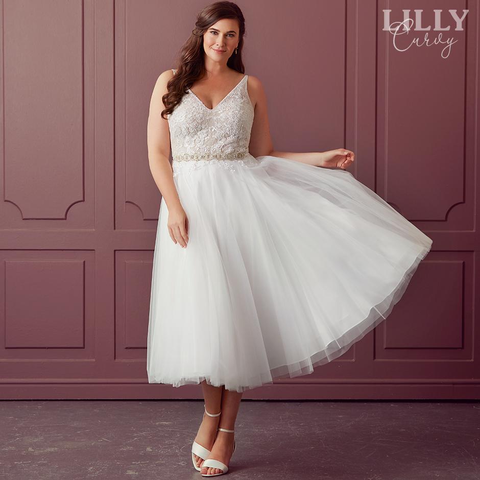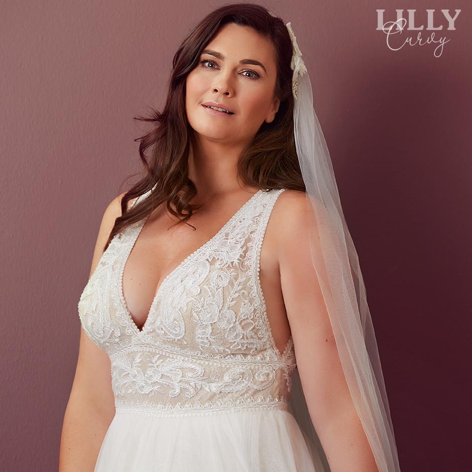 TIP: I vores Curvy-afdeling hos LILLY i Vejle har vi det største udvalg af plussize brudekjoler i str. 46-54, som du kan prøve med det samme. Forskellige udskæringer, stof og snit - du får mulighed for at prøve det hele og derved komme et skridt nærmere på drømmebryllupet.